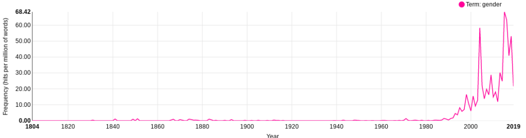 Figure 1 shows the use of the term gender in the House of Commons Hansard Corpus.
